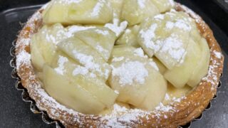 とろけるような食感と芳醇な香りな洋梨はそのままでも十分過ぎる美味しさだけど、焼きこんだタルトもバターとアーモンドの相乗効果で味も香りも最高