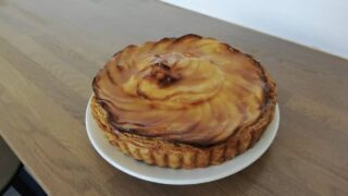 このりんごパイは修行先の看板メニューとして秋になると心待ちにしているお客様も多くシーズン中は数え切れないほどりんごを薄くスライスしていた。慣れない頃はよく指も切っていた。シンプルな材料なのに感動する美味しさ。
