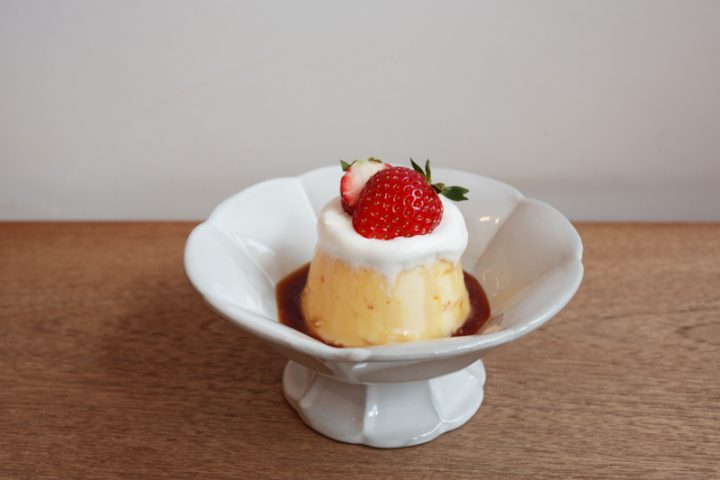 スプーンを入れると少し固めのしっかりとした食感で、そこにほろ苦く濃いめに焦がしたキャラメル、そして程よい甘さの生クリームとちょこんと乗せた真っ赤ないちご。見た目もレトロで可愛らしく、そして何より、丁寧に淹れた美味しいコーヒーにぴったりと寄り添ってくれる味でした。